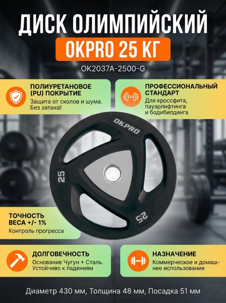 Диск олимпийский полиуретановый 25 кг OKPRO OK2037A-2500-G - Бренд
