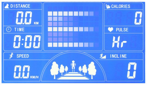| Показания дисплея: | Дистанция, время тренировки, скорость бега, значение пульса или калорий |