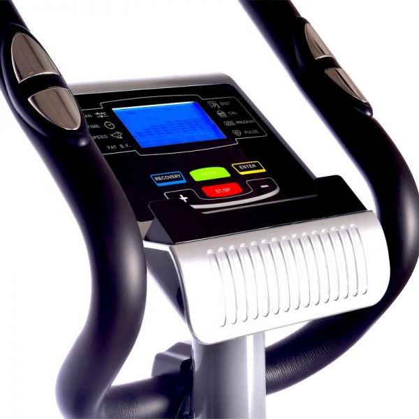 - Велотренажеры – в продаже представлены профессиональные и домашние модели, спин-байки и велоэргометры. В последних используются датчики работы сердца, что позволяет настраивать тренировки в зависимости от самочувствия. Количество уровней нагрузки может достигать 40.