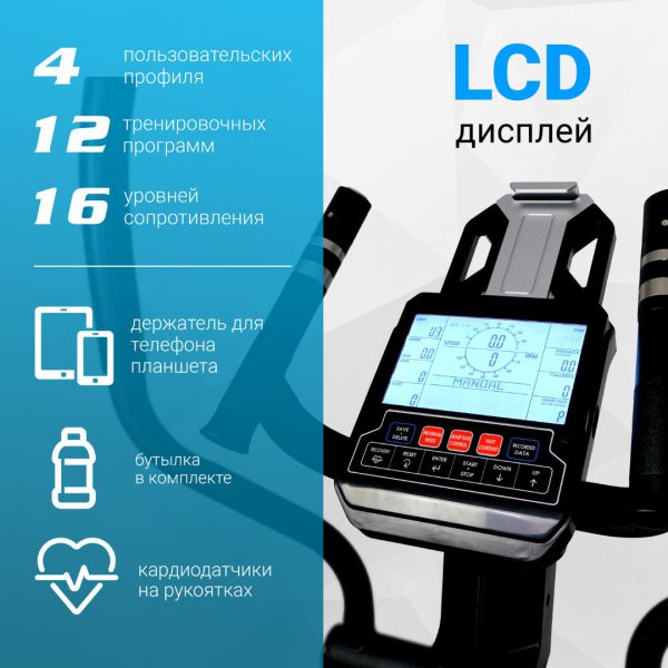 | Особенности: | для похудения, электромагнитные, до 150 кг, с длиной шага 40 см, с программами тренировок |