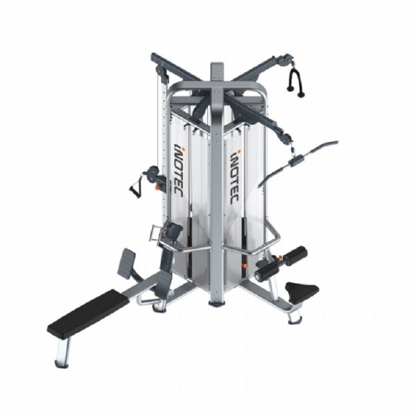 - Мультистанции – многофункциональные тренажеры, которые позволяют спортсмену самостоятельно определять, с какой группой мышц работать. Включают в себя сразу несколько спортивных снарядов и могут комплектоваться дополнительными опциями.