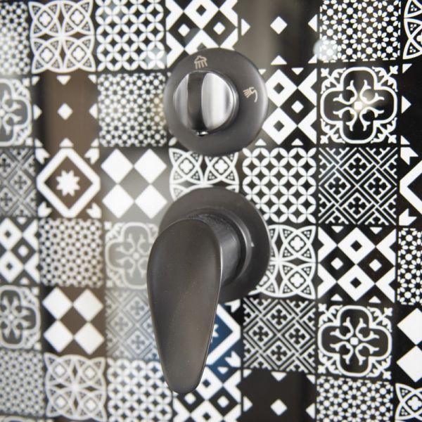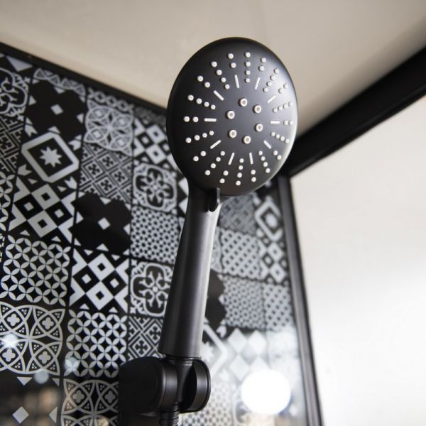 | Оснащение: | смеситель матовый черный, душевая многофункциональная лейка со шлангом чёрного матового цвета, держатель лейки чёрный матовый, полочка для шампуня чёрная матовая, верхний тропический душ чёрного матового цвета |