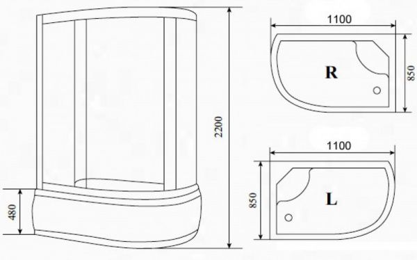 | 1. Высокий акриловый поддон - 45 см. |