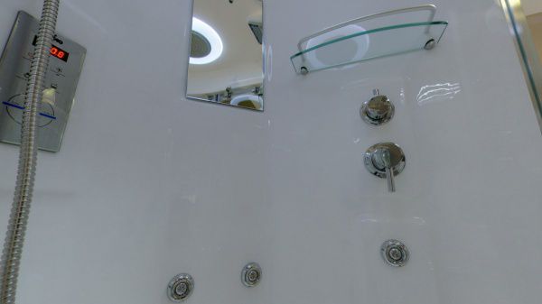| Комплектация: | зеркало, полки, душевая лейка, смеситель, подсветка |