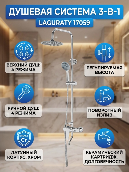 Душевая система Laguraty 17059 хром - Описание