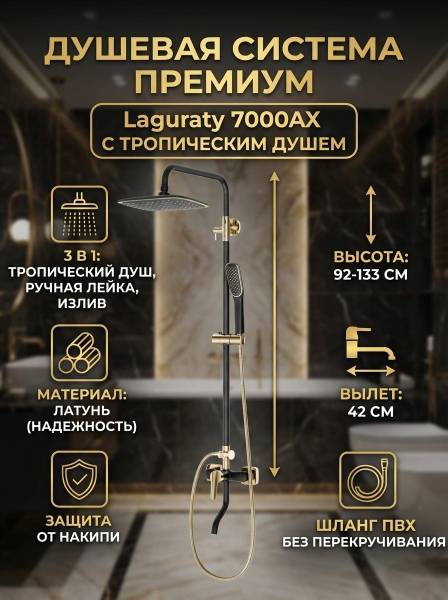 Душевая система Laguraty 7000AX черный/золото - Бренд