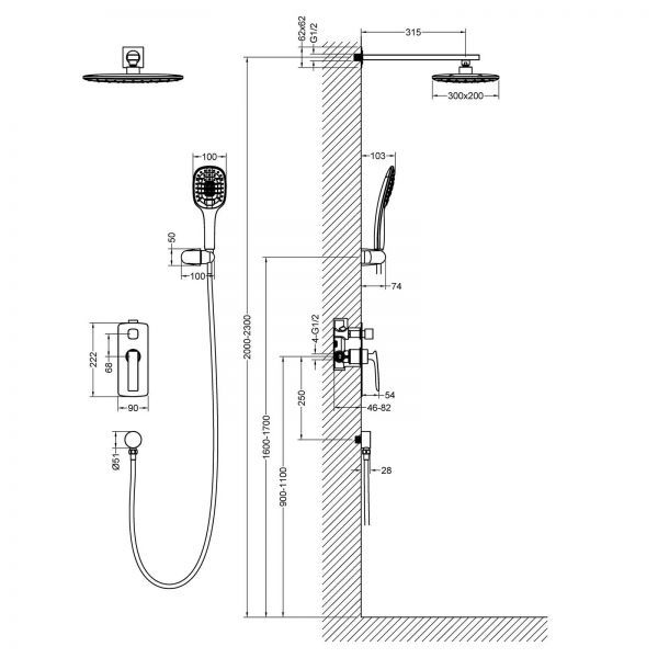 | Размер верхнего душа: | 30 x 20 см |
