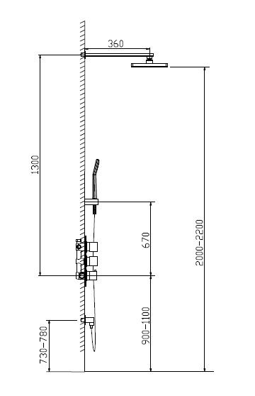 | Верхний душ, квадратный: | 230 x 230 мм |
