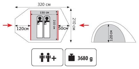 | Двухслойная палатка с двумя входами. | |
