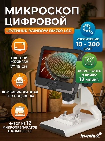 Купить электронный микроскоп Levenhuk Rainbow DM700 LCD по эксклюзивной цене от официального дилера. Профессиональные консультации.