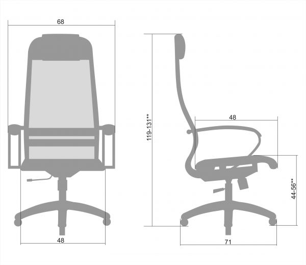 Габариты кресла (ДхШхВ): 71 см х 68 см х 119 - 131 см