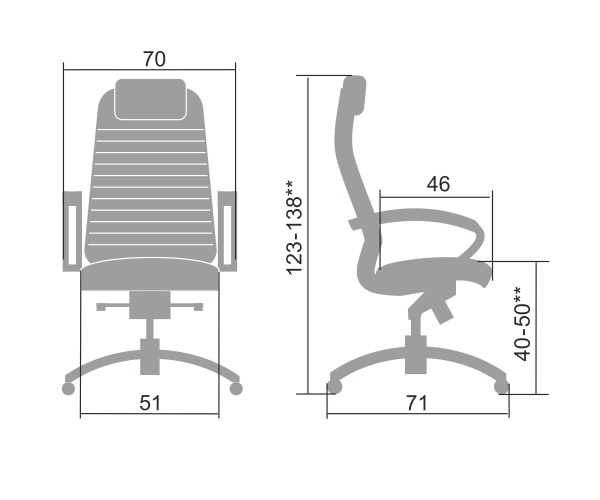 | Габариты (ШхГхВ): | 70 см х 71 см х 123-138 см |