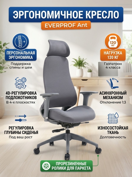 Купить Эргономичное кресло Everprof Ant ткань по эксклюзивной цене от официального дилера. Профессиональные консультации.