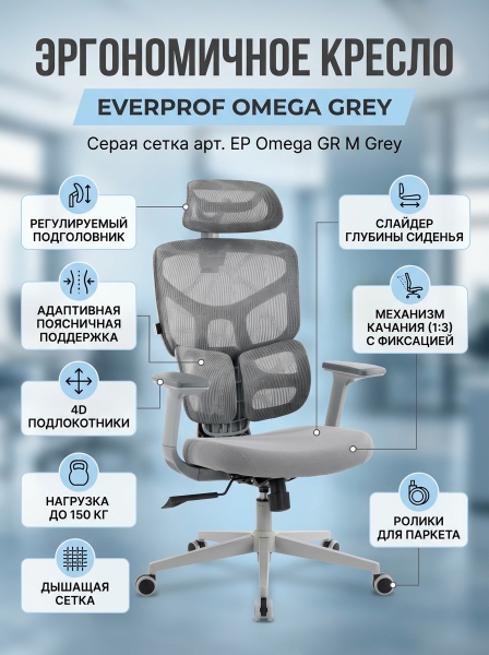 Эргономичное кресло Everprof Omega Grey серая сетка - Бренд