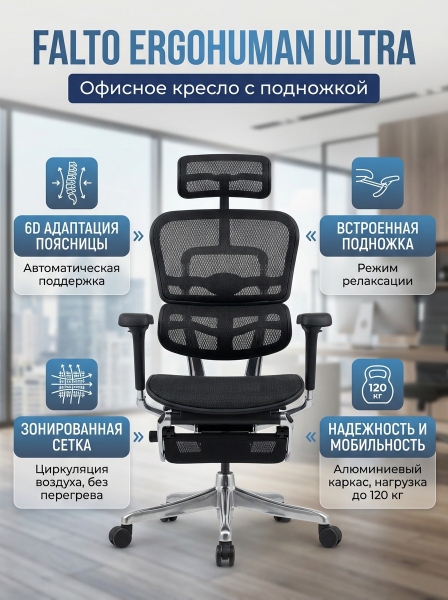 Офисное кресло Falto Ergohuman Ultra с подножкой, черное - Описание