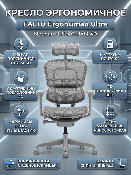 Кресло эргономичное Falto Ergohuman Ultra (серый каркас/сетка светлая) - Описание
