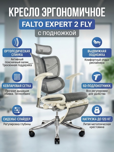 Купить Эргономичное кресло Falto Expert 2 Fly с подножкой по эксклюзивной цене от официального дилера. Профессиональные консультации.