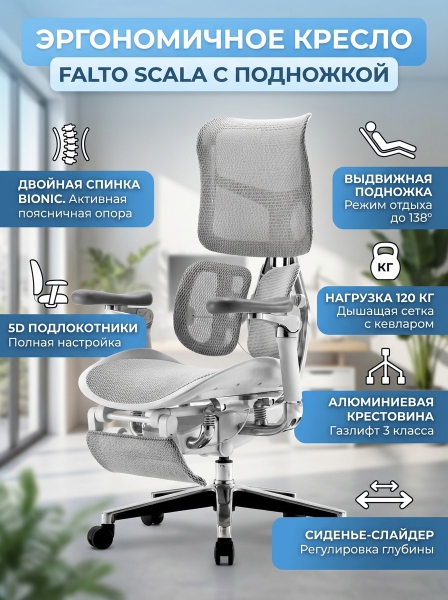 Эргономичные кресло с подножкой Falto Scala светлый каркас - Описание