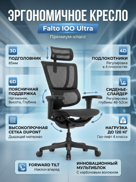 Купить Эргономичное кресло Falto IOO Ultra по эксклюзивной цене от официального дилера. Профессиональные консультации.