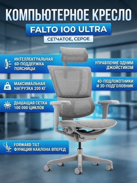 Высокотехнологичное компьютерное кресло Falto IOO Ultra сетка, серый - Описание
