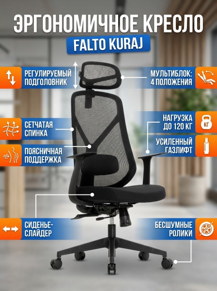 Эргономичное кресло Falto KURAJ (цвет: черный) - Доставка