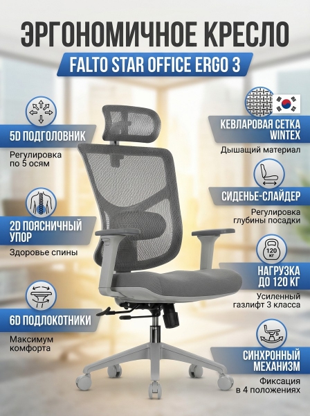 Кресло эргономичное Falto Star Office Ergo 3 (сетка, ткань, серый) - Доставка