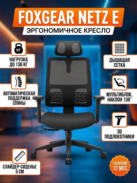 Купить Эргономичное кресло FoxGear NETZ модель E, черный по эксклюзивной цене от официального дилера. Профессиональные консультации.