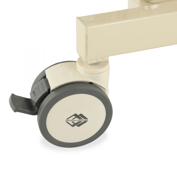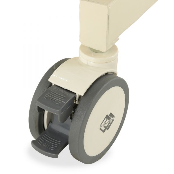 | Колеса: | 4 шт. (Ø 12,3 * 8,1 см), двойные, самоориентирующиеся, с поворотом на 360⁰ из немаркого полиуритана; индивидуальный тормоз на каждое колесо, с одновременной блокировкой поворота |