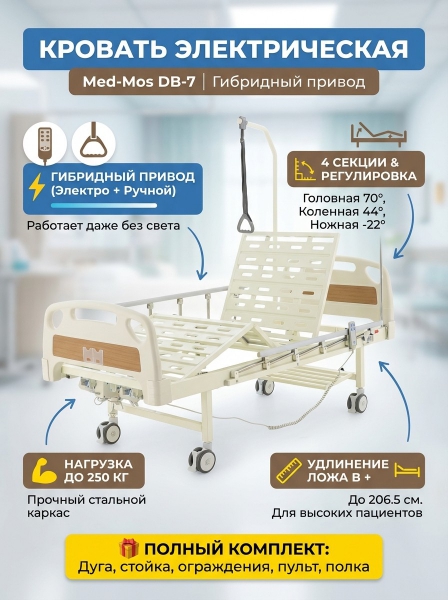 Купить функциональную медицинскую кровать Мед-Мос DB-7 (ME-2018Д-03) по эксклюзивной цене от официального дилера. Профессиональные консультации.