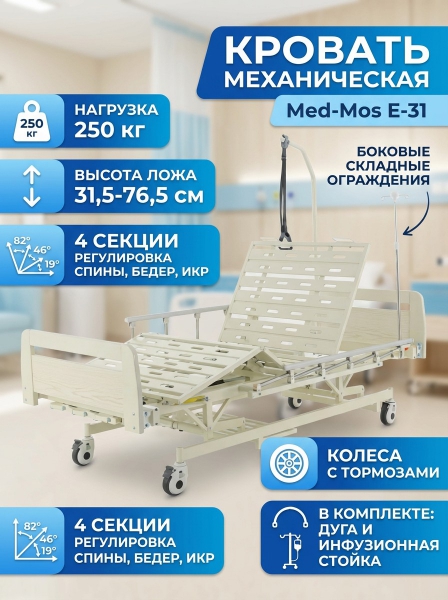 Купить функциональную медицинскую кровать Мед-Мос Е-31 (РМ-3024Д-02) по эксклюзивной цене от официального дилера. Профессиональные консультации.