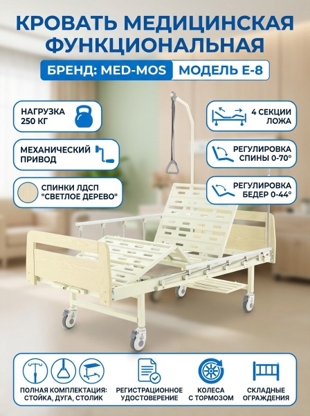 Купить функциональную медицинскую кровать Мед-Мос Е-8 (ММ-2024Д-00) ЛДСП (светлое дерево) по эксклюзивной цене от официального дилера. Профессиональные консультации.