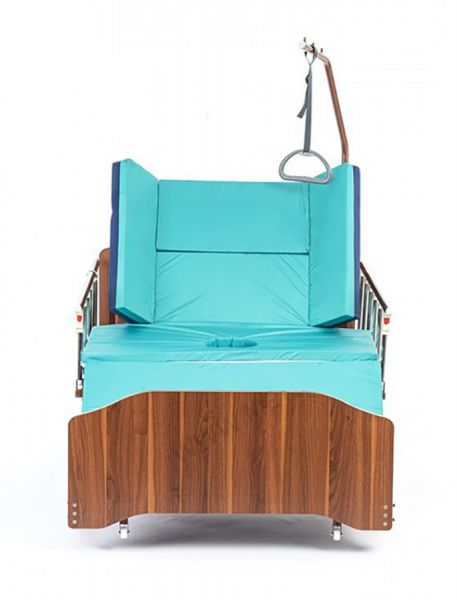 | Туалетное устройство с электроприводом. Мягкая часть матраса отъезжает с помощью привода, открывая доступ к судну. Полка туалетного устройства с судном выдвигается в сторону отверстия. Затем в обратном порядке. | |