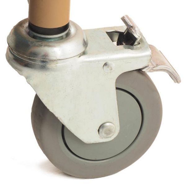 | Самоориентирующиеся колёса диаметром 100 мм, оснащённые тормозами-фиксаторами, воздействующими на покрышки | |