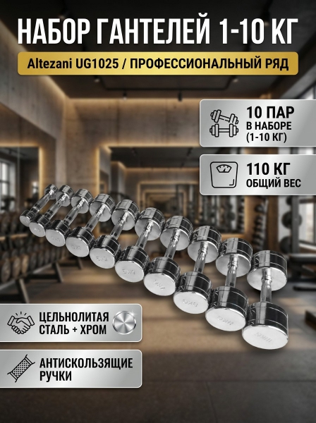 Набор хромированных гантелей от 1 до 10 кг Altezani UG1025 - Описание