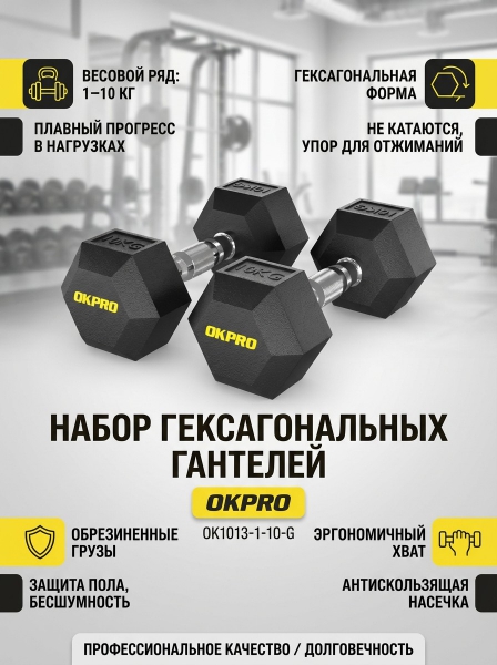 Набор гексагональных гантелей от 1 до 10 кг OKPRO OK1013-1-10-G - Описание