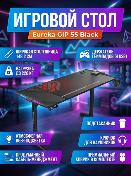 Купить геймерский стол Eureka GIP 55 Black по эксклюзивной цене от официального дилера. Профессиональные консультации.