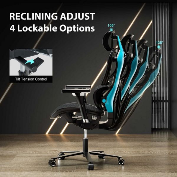 Кресло компьютерное эргономичное (для геймеров) Eureka TYPHON, Blue - Описание