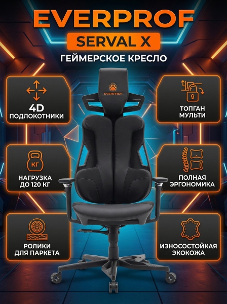 Купить Кресло для геймера Everprof Serval X экокожа по эксклюзивной цене от официального дилера. Профессиональные консультации.