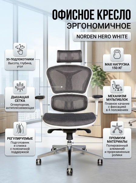 Купить Кресло для геймера Norden Hero white по эксклюзивной цене от официального дилера. Профессиональные консультации.