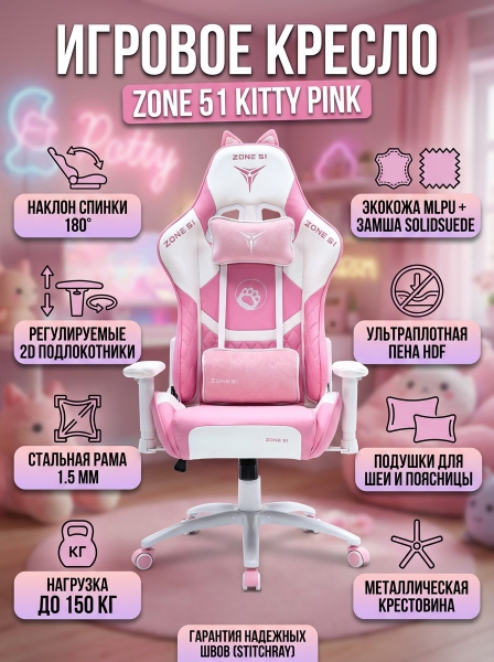 Игровое компьютерное кресло Zone 51 Kitty Pink - Описание