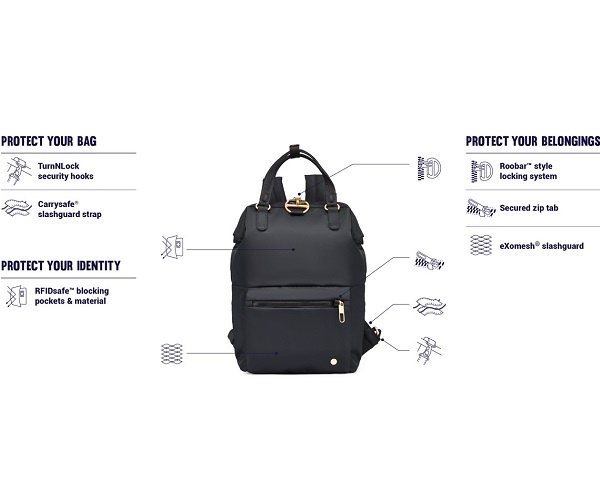 Женский рюкзак антивор Pacsafe Citysafe CX mini черный - Преимущества