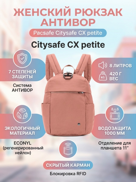 Женский рюкзак антивор Pacsafe Citysafe CX petite 8 л розовый ECONYL - Описание