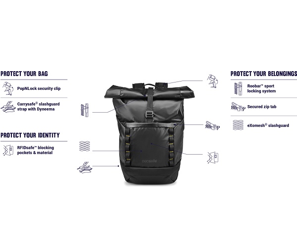 Рюкзак антивор Pacsafe Dry Lite 30L черный - Преимущества