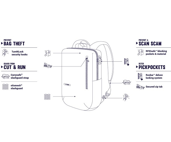 Рюкзак антивор Pacsafe Intasafe Backpack черный 20 л - Преимущества