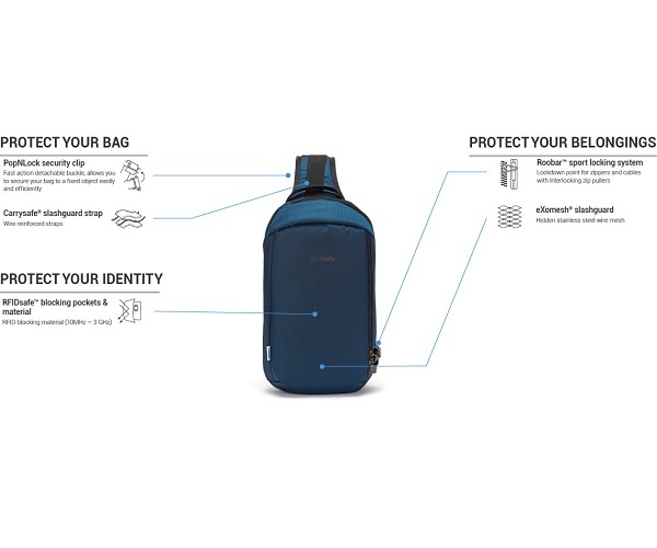 Сумка антивор Pacsafe Vibe 325 sling ECONYL океан 10 л - Преимущества