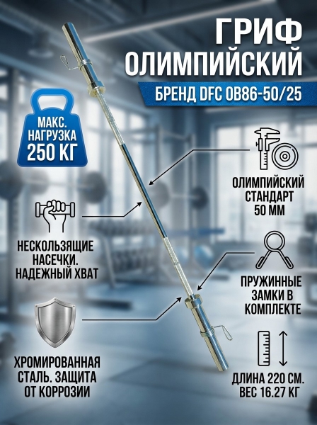 Гриф олимпийский прямой DFC OB86-50/25 - Характеристики