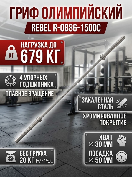 Гриф олимпийский прямой 86" REBEL R-OB86-1500С до 679 кг, с упорным подшипником - Описание