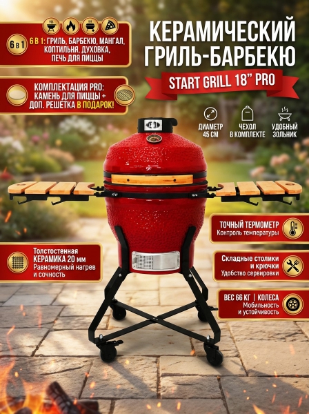 Керамический гриль-барбекю Start Grill 18 дюймов (красный) (45 см) - Характеристики