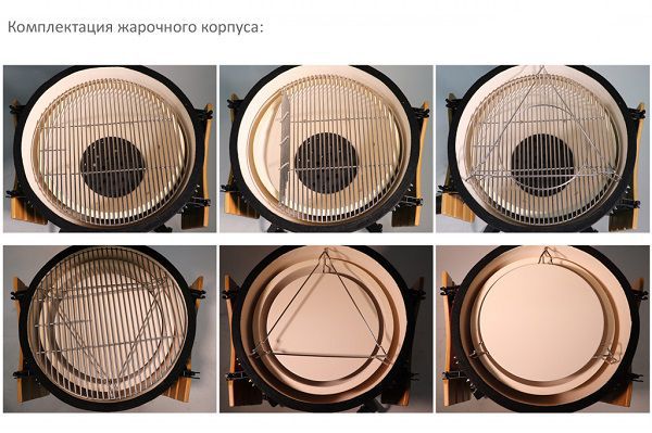 | Комплектация: | складные бамбуковые столики, транспортировочные колеса, решетка гриль, держатель камня для пиццы, камень для пиццы, фирменный чехол, съемный золосборник |