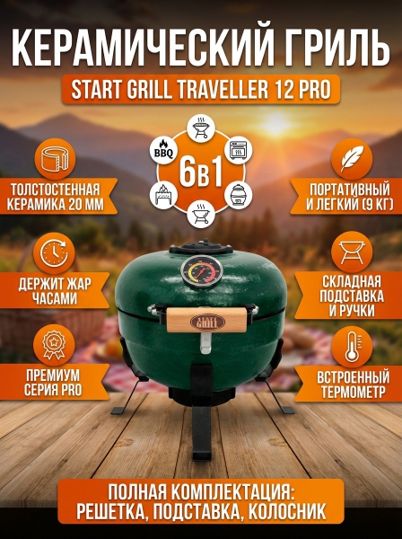 Портативный керамический гриль Start Grill TRAVELLER 12 дюймов (зеленый) (30,5 см) - Описание